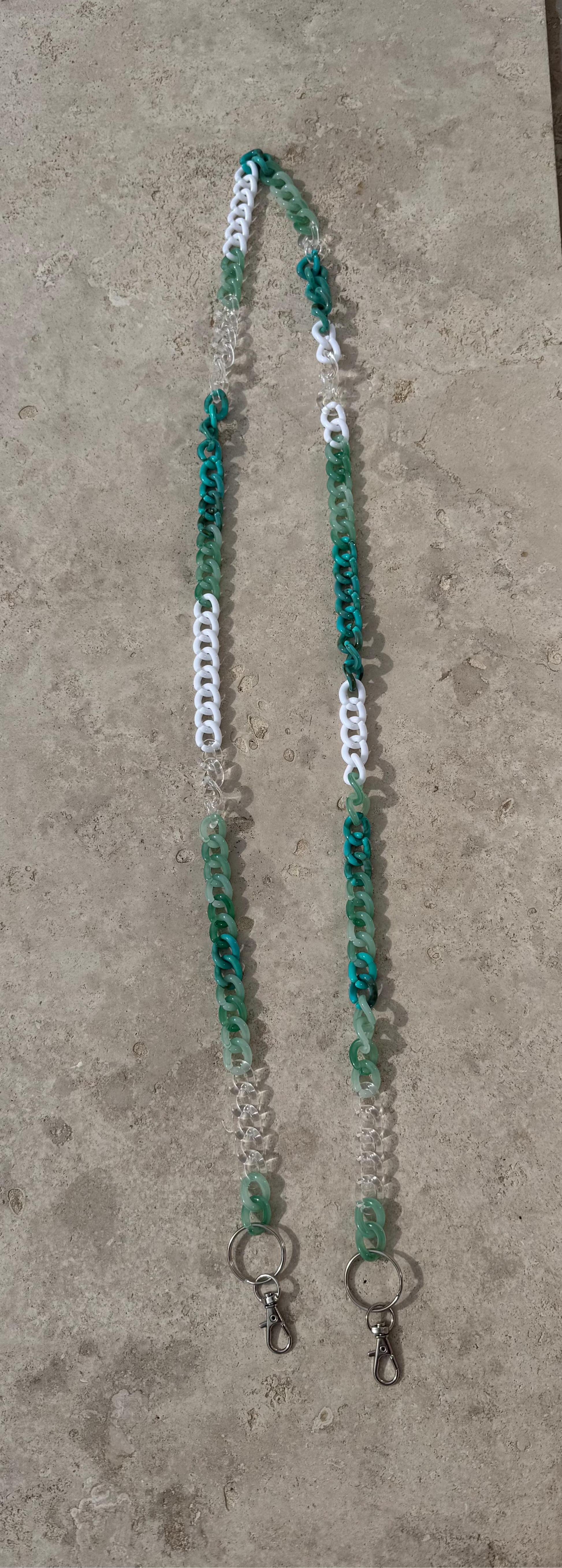 Plonge dans une ambiance fraîche et lumineuse avec le bijou de téléphone ✨Blue Vibes✨. Composé de maillons turquoise et bleus, il évoque l’horizon, l’écume et les vacances au bord de l’eau 🌊