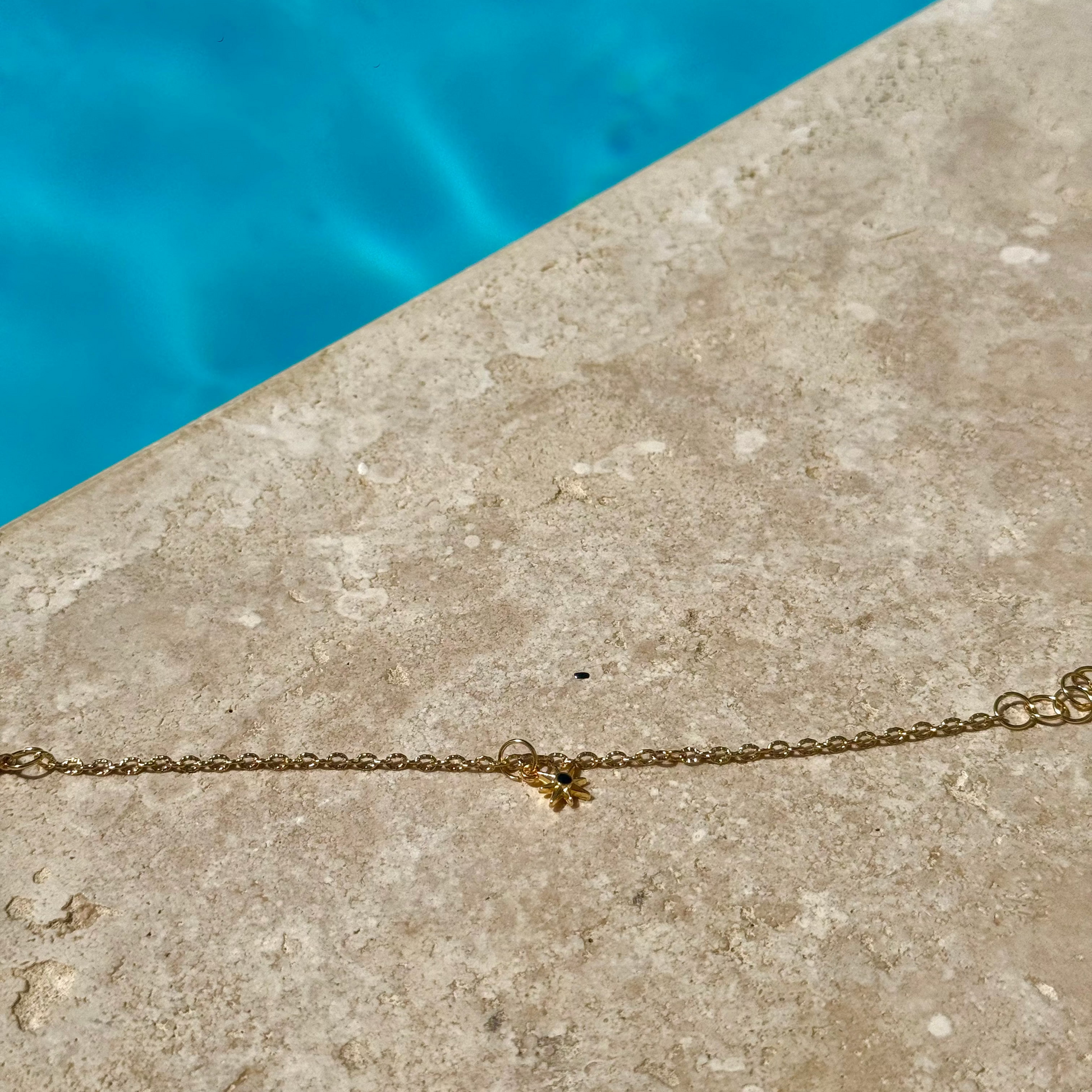 Le bracelet ✨Étoile d’Ébène✨ associe la finesse d’une chaîne délicatement martelée à une petite étoile lumineuse, sublimée par une touche de noir au centre.