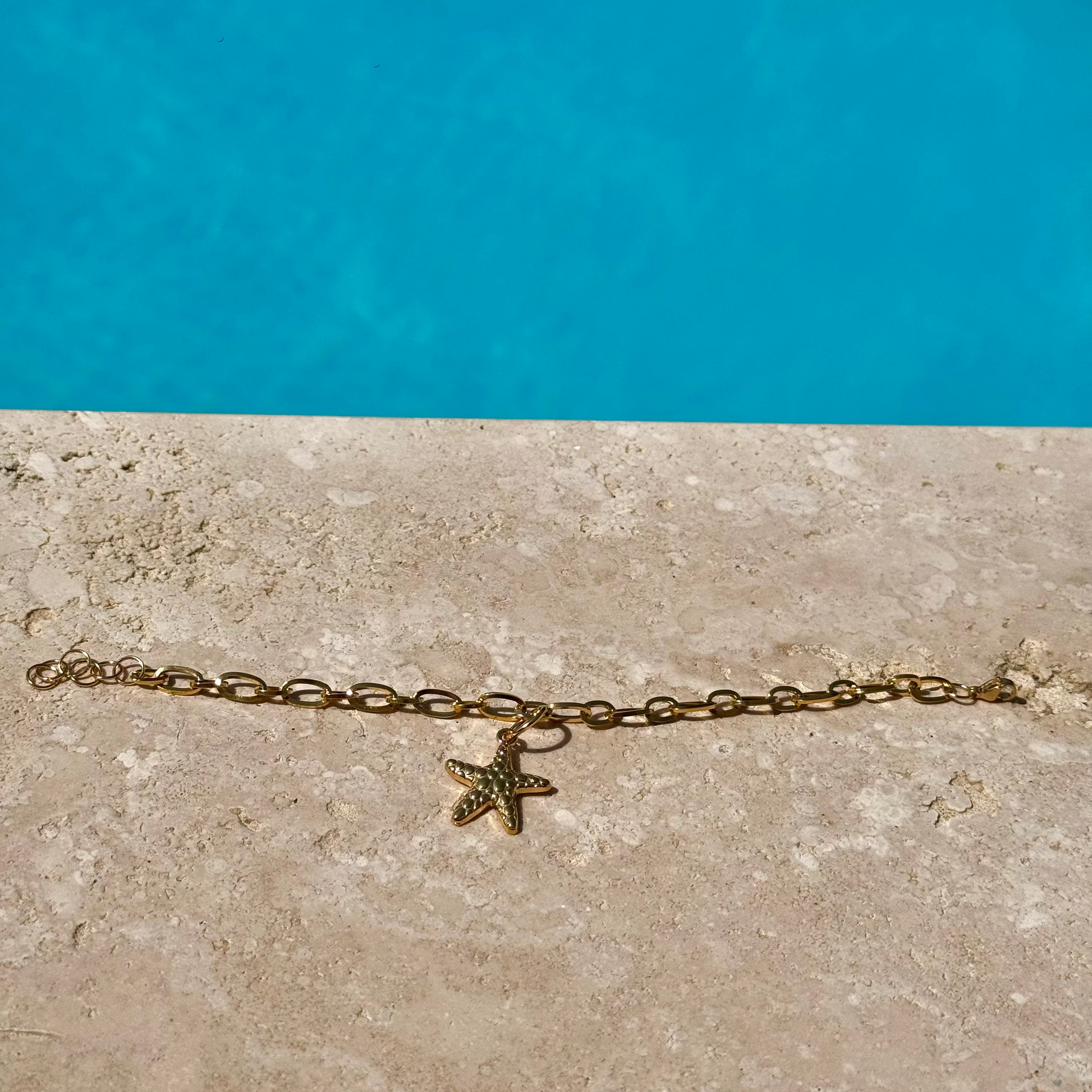 Le bracelet ✨Naya✨ est une ode à la mer et à la liberté. Avec sa chaîne épaisse dorée au design affirmé et son étoile de mer délicatement posée en son centre, il capte l’esprit sauvage et solaire des rivages lointains.
