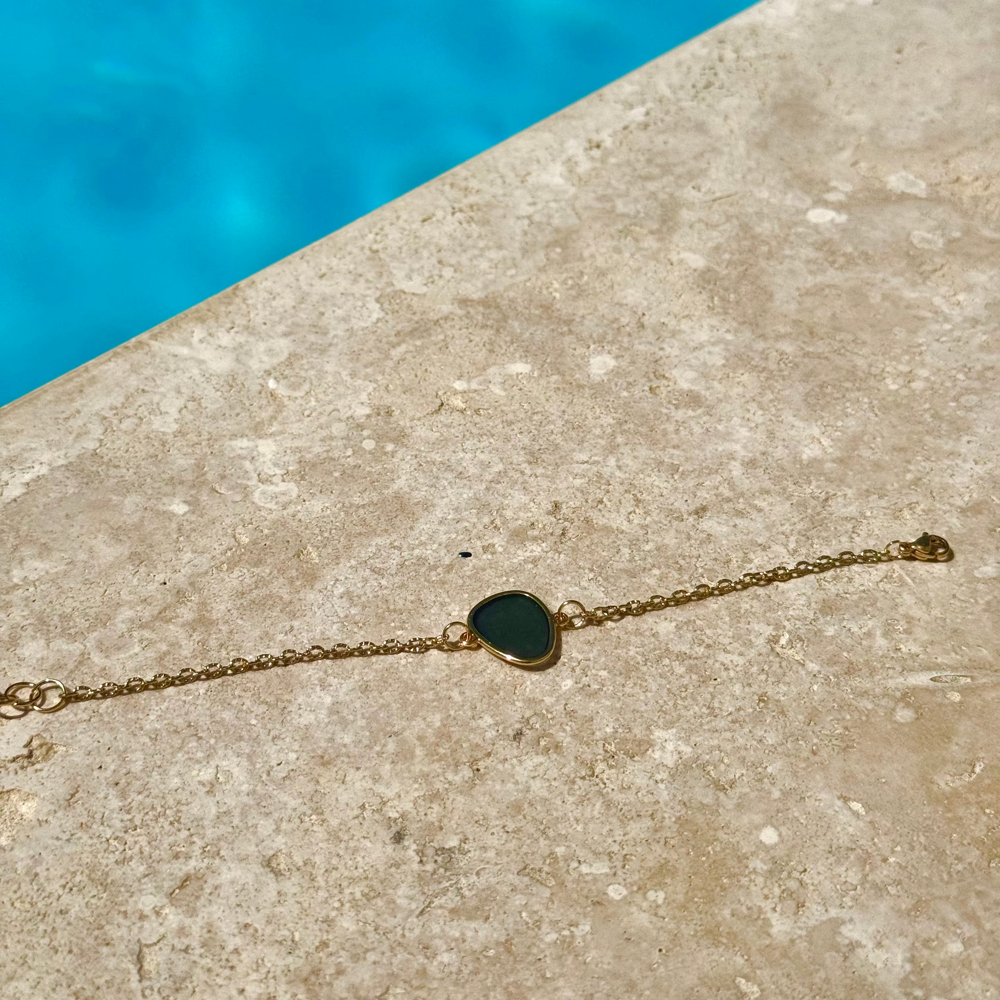 Le bracelet ✨Triangle Obscur✨ met en avant un pendentif triangulaire noir et une chaîne fine délicatement martelée.
